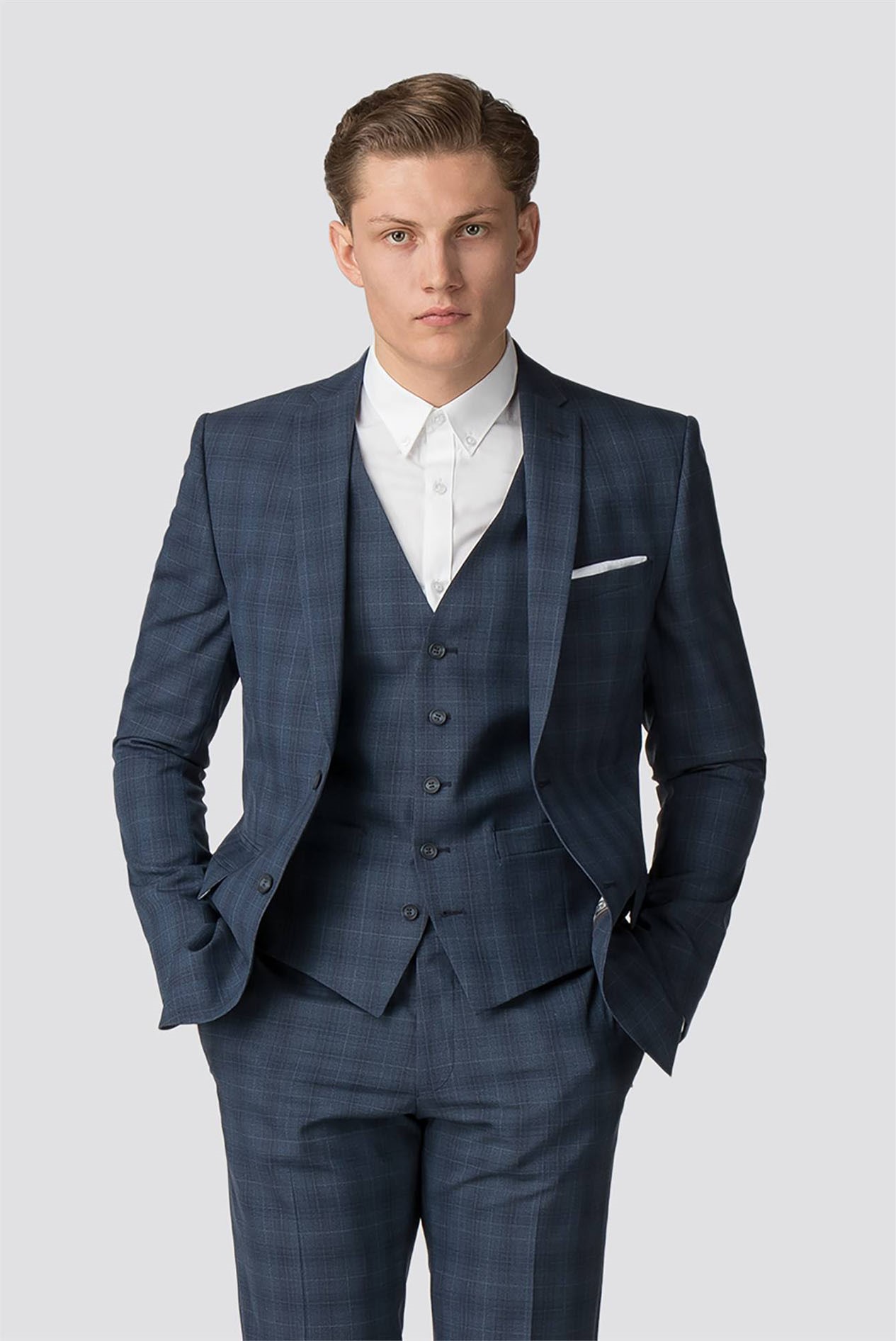 Mens Slim Fit Suits Uk : T.M.Lewin Mens Maxwell Textured Navy Slim Fit Italian ... / Charles tyrwhitt's men's slim fit suits upgrade your wardrobe and click here to shop today.. Mens next slim fit suit in grey blazer 38reg trousers 32reg used two time will com with stripe pink shirt and stripe blue shirt pick up only. Our slim suits are ideal for a smart and flattering fit and have free returns. Get the latest styles, brands of fitted men's clothing from men's wearhouse. Shop for slim fit and fittted mens suits for skinny men. How should men's extra slim fit suit separates fit?