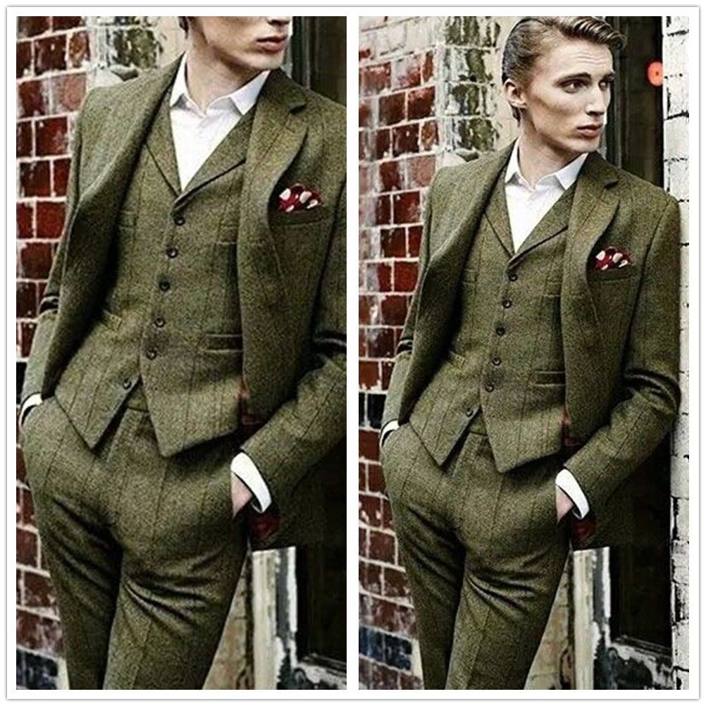 Mens Suits For Wedding Green / NEW Olive Green Tweed Men'S Suit Slim Fit Jacket Custom ... - Come see this seasons best selling wedding suits, grooms suits, and groomsmens suits.. Few are the men who are lucky enough to finish the. Mens dark purple suit groom tuxedos wedding formal suit party prom dinner custom. I have made silks, satins and velvets, lightweight linens as well as heavy tweeds and prince of wales checks. The tailcoat is a more sophisticated choice. The mens green wedding suit is acceptable to wear from the office to the summer wedding.
